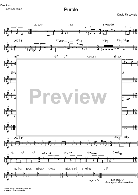 Digital Sheet Music for Purple - C Instruments by David Fiuczynski scored for Lead Sheet; id:326654