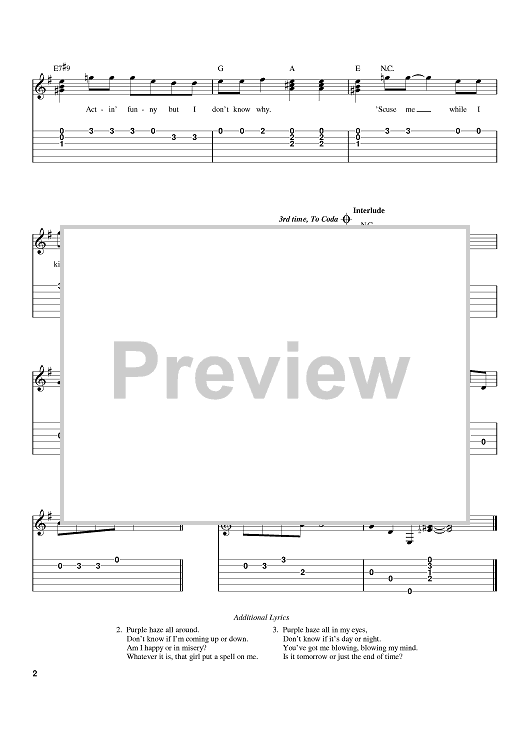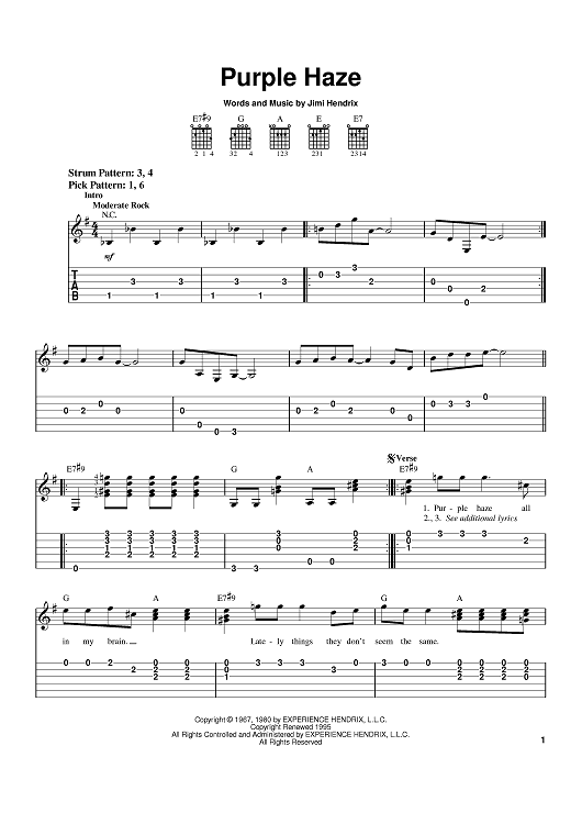 "Purple Haze" Sheet Music by Jimi Hendrix