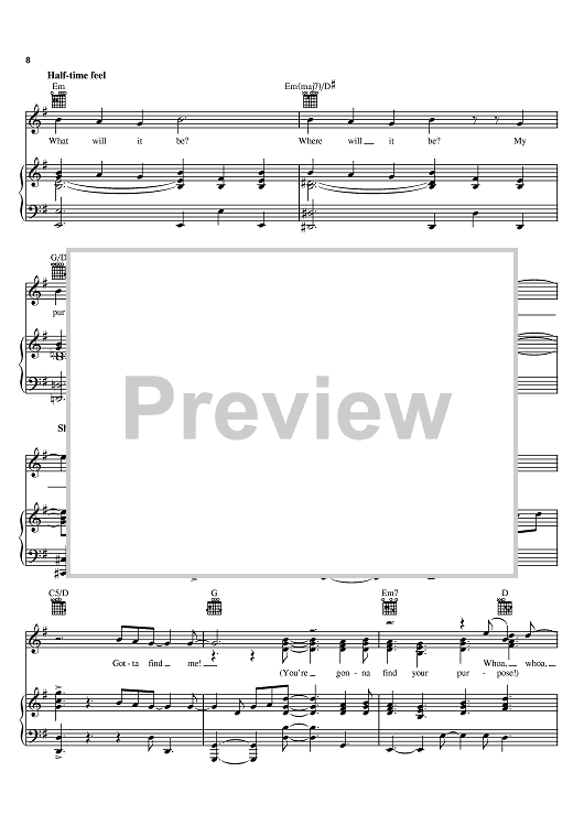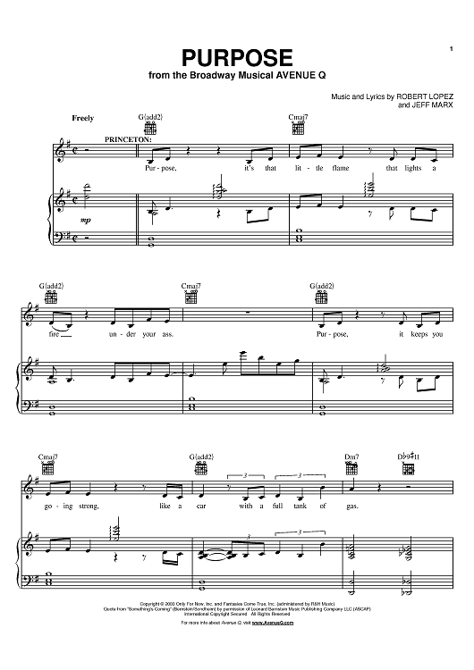 Digital Sheet Music for Purpose by Robert Lopez, Jeff Marx scored for Piano/Vocal/Chords; id:374798