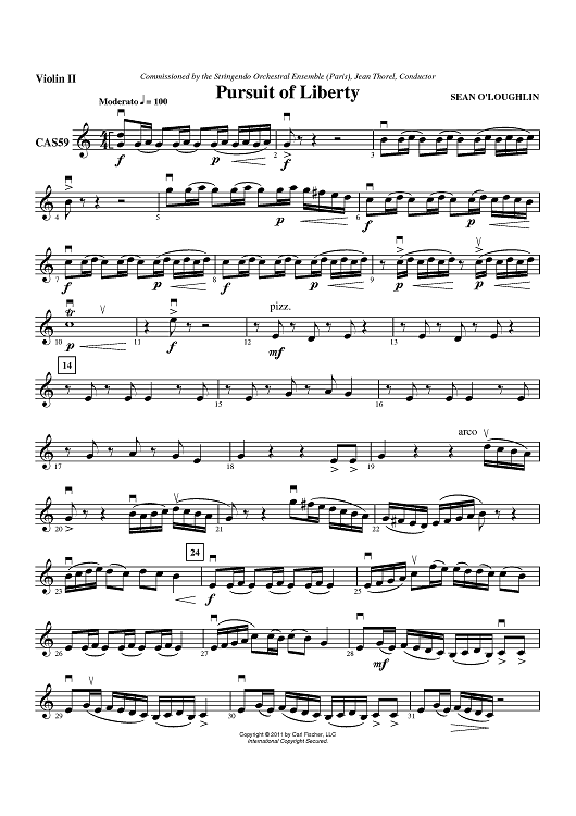 "Pursuit of Liberty - Violin 2" Sheet Music by Sean O'Loughlin