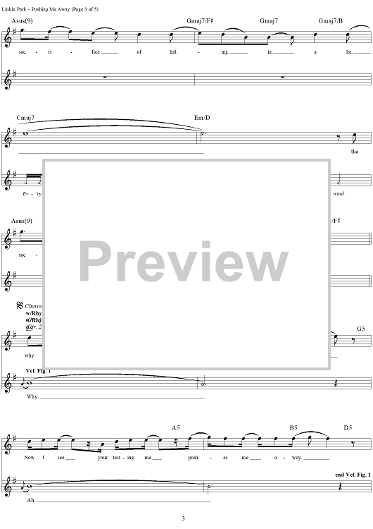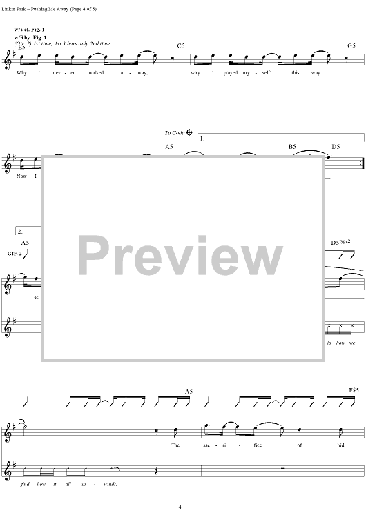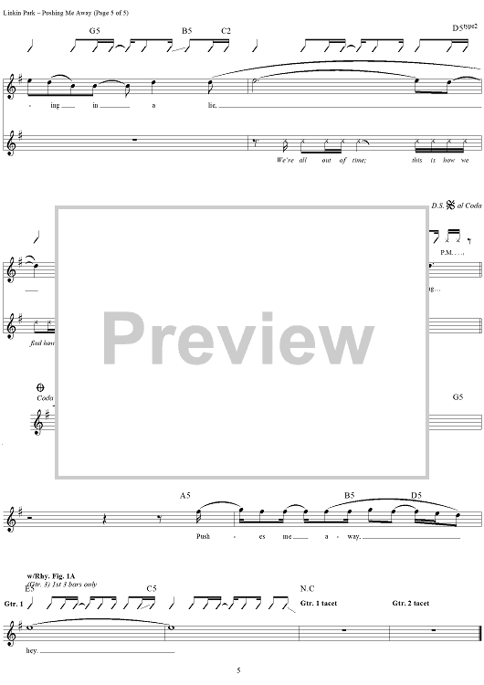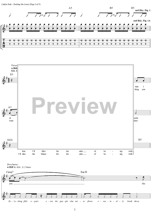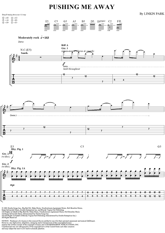 Digital Sheet Music for Pushing Me Away by Linkin Park scored for Guitar Tab/Vocal; id:285787