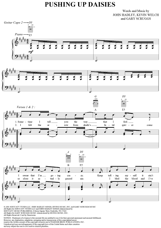 Digital Sheet Music for Pushing Up Daisies by Garth Brooks, Kevin Welch, Gary Scruggs, John Hadley scored for Piano/Vocal/Chords; id:288911