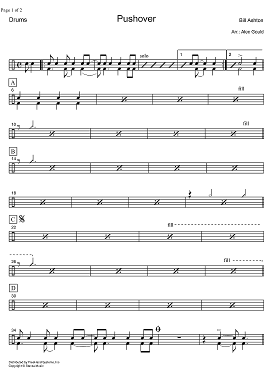 "Pushover - Drums" Sheet Music by Bill Ashton