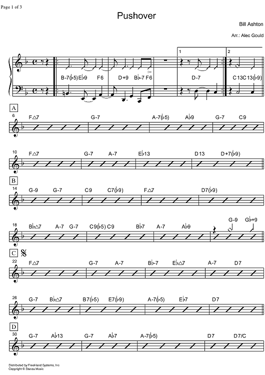 Digital Sheet Music for Pushover - Piano by Bill Ashton, Alec Gould scored for Ensemble; id:322829