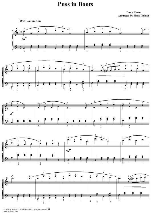 Digital Sheet Music for Puss in Boots by Hans Lichter, Louis Dorn scored for Piano Solo; id:294714