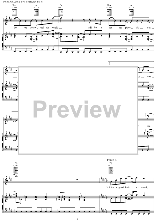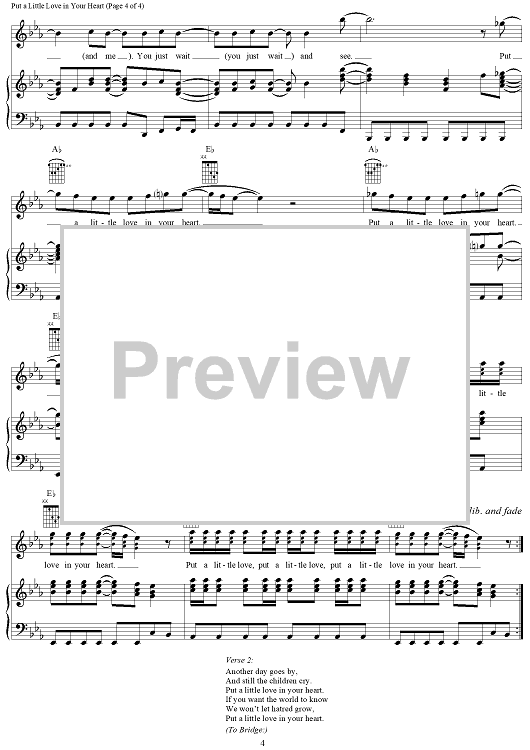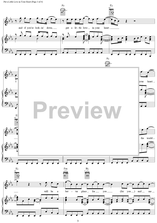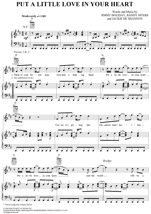 Digital Sheet Music for Put a Little Love in Your Heart by Jimmy Holiday, Jackie DeShannon, Anne Murray, Randy Myers scored for Piano/Vocal/Chords; id:289080