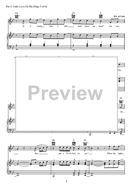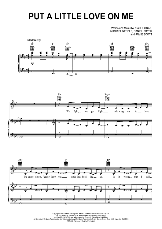 Digital Sheet Music for Put A Little Love On Me by Niall Horan, Jamie Scott, Daniel Bryer, Michael Needle scored for Piano/Vocal/Chords; id:467931