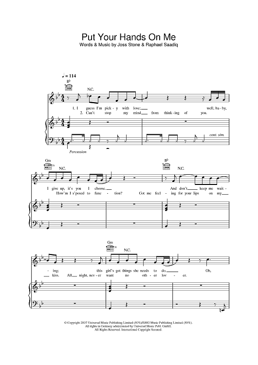 Digital Sheet Music for Put Your Hands On Me by Raphael Saadiq, Joss Stone scored for Piano/Vocal/Chords; id:397128