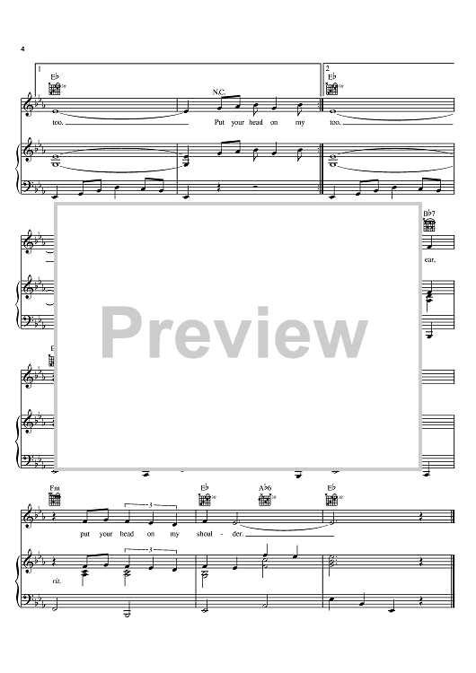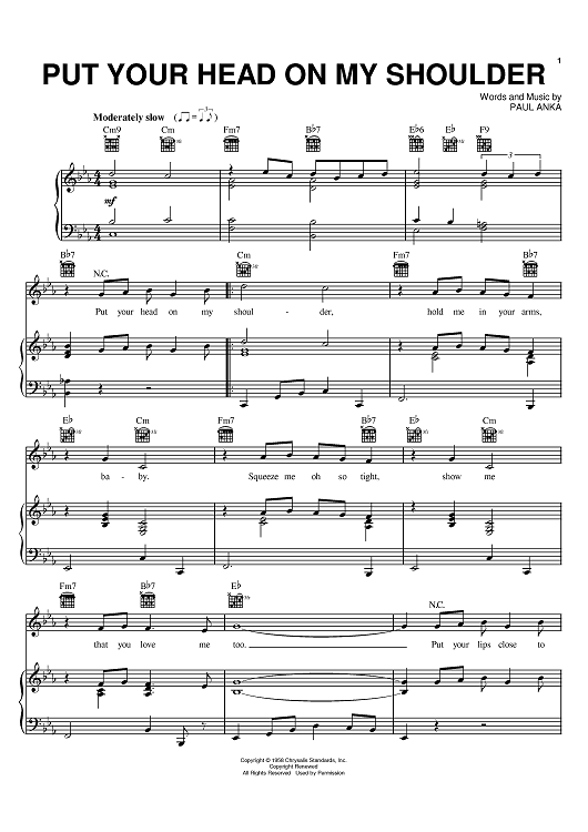 Digital Sheet Music for Put Your Head On My Shoulder by The Lettermen, Michael Buble, Paul Anka scored for Piano/Vocal/Chords; id:383167