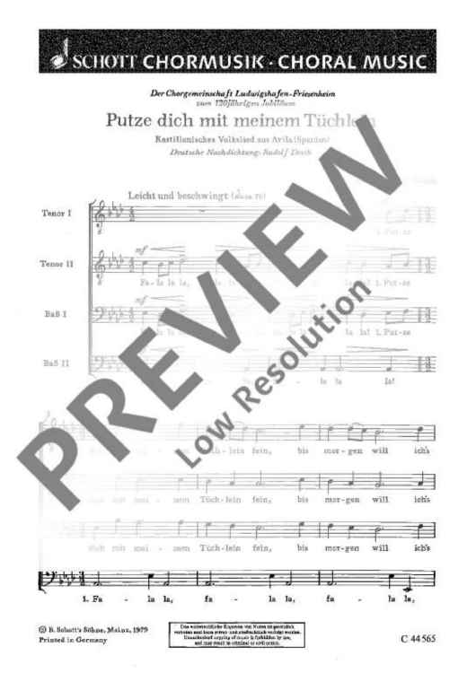 Digital Sheet Music for Putze dich mit meinem Tüchlein - Choral Score by Rudolf Desch scored for Men's Choir (ttbb); id:479915