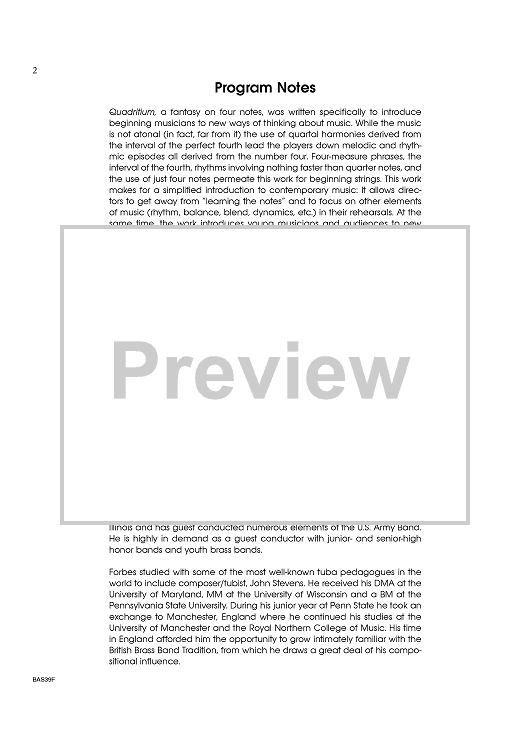 Digital Sheet Music for Quadritium - Score by Mike Forbes scored for Orchestra; id:406708