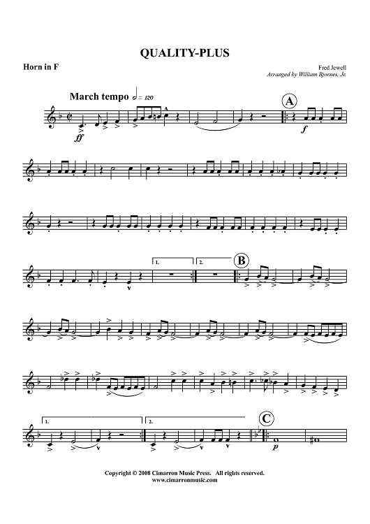 "Quality-Plus - Horn in F" Sheet Music by Fred Jewell
