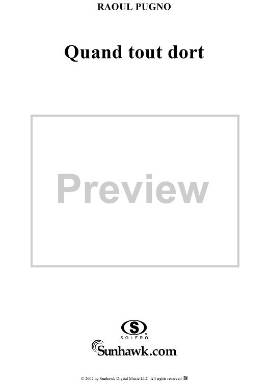 "Quand tout dort" Sheet Music by Raoul Pugno