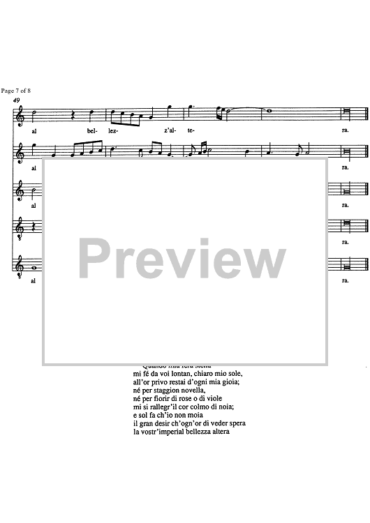 "Quando mia fera stella" Sheet Music by Alessandro Orologio