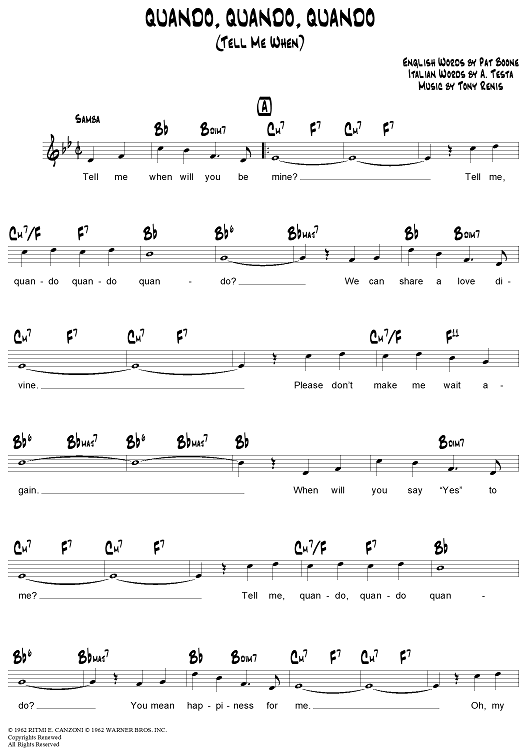Digital Sheet Music for Quando, Quando, Quando (Tell Me When) by Pat Boone, Tony Renis, A. Testa, Michael Buble scored for Lead Sheet; id:307620