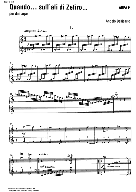 Digital Sheet Music for Quando... sull'ali di Zefiro - Harp 1 by Angelo Bellisario scored for 2 Harps; id:351159
