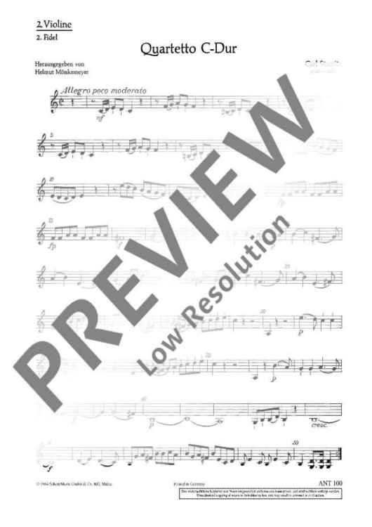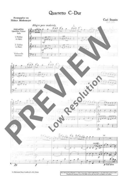 Digital Sheet Music for Quartet C major - Score and Parts by Helmut Moenkemeyer, Carl Philipp Stamitz scored for Treble Recorder (flute, Violin), 2 Violins (fiddles) And Cello (bass-fiddle); id:471097