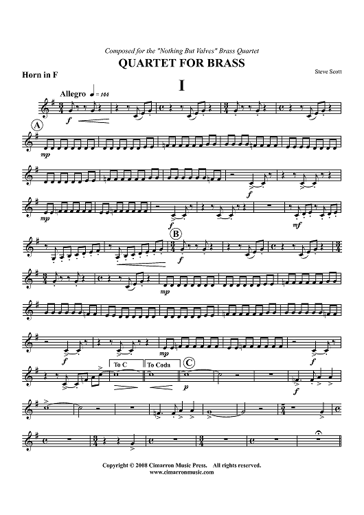 "Quartet for Brass - Horn in F" Sheet Music by Steve Scott