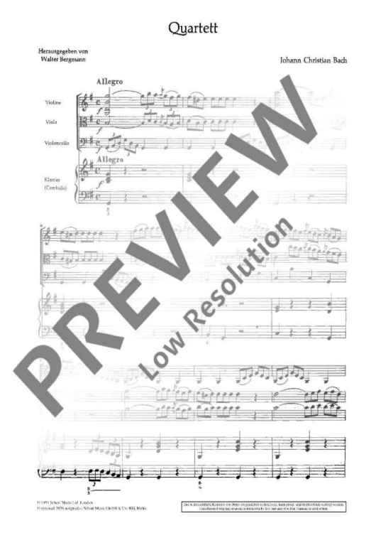 Digital Sheet Music for Quartet G major by Johann Christian Bach scored for Violin, Viola, Cello And Piano (harpsichord); id:470983