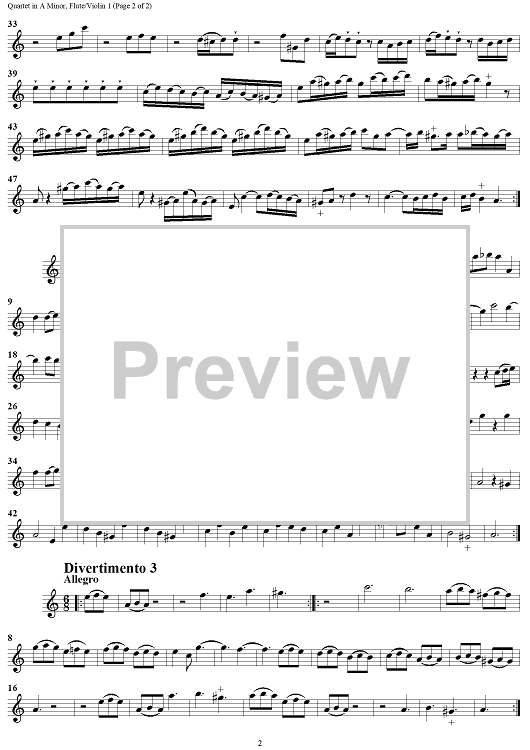 "Quartet in A minor - Flute 1/Violin 1" Sheet Music by Georg Philipp Telemann