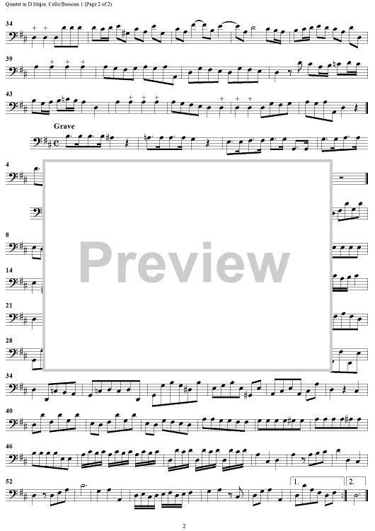 Digital Sheet Music for Quartet in D major - Cello/Bassoon 1 by Georg Philipp Telemann scored for 2 Flutes or Violins, 2 Bassoons or Cellos; id:183866