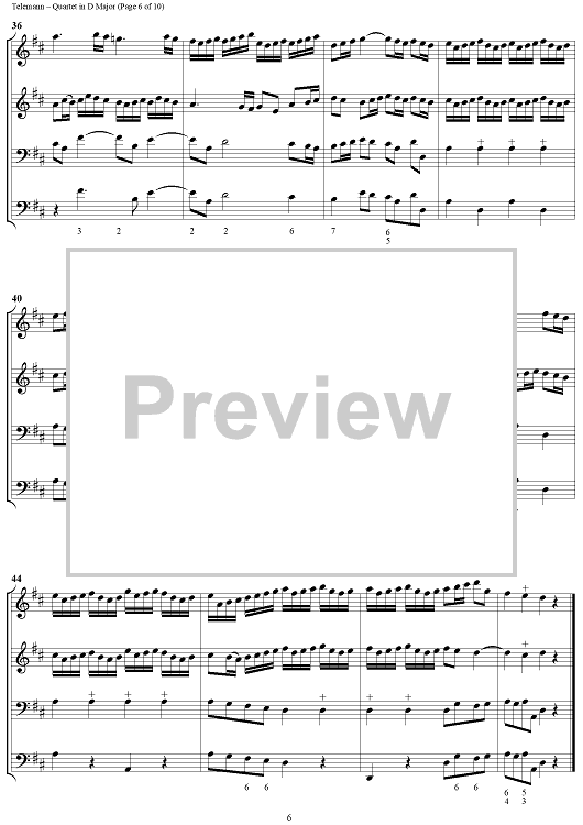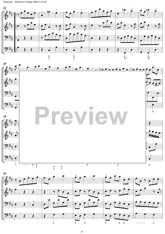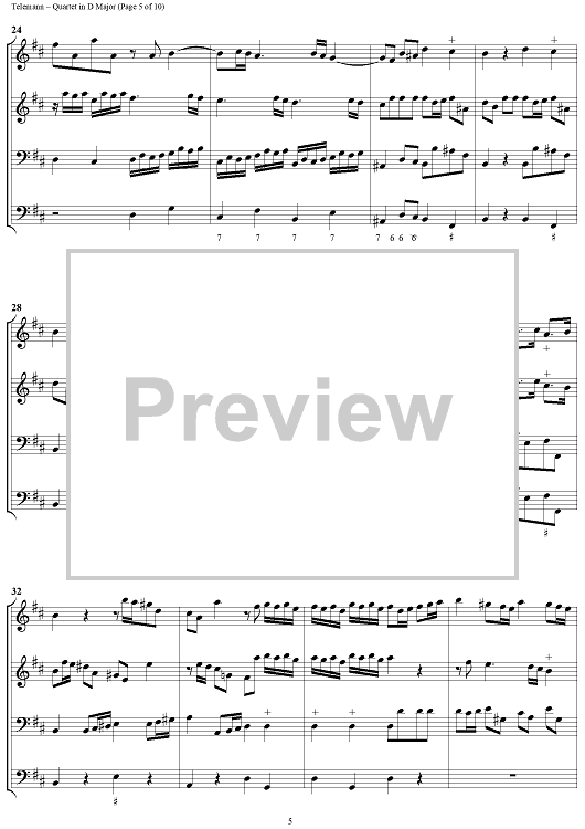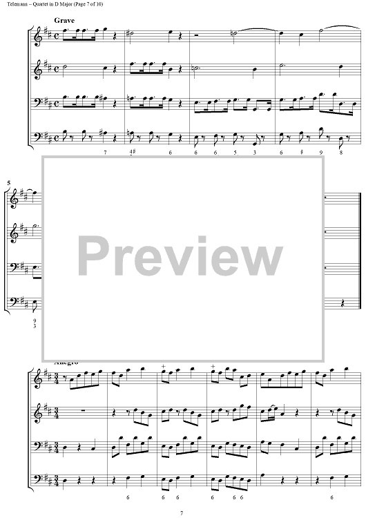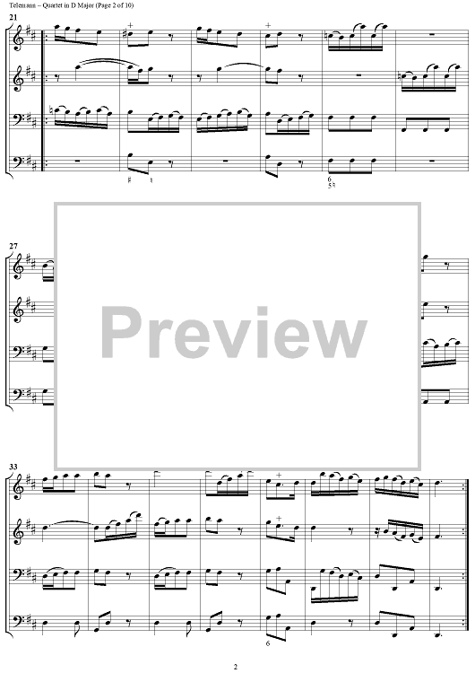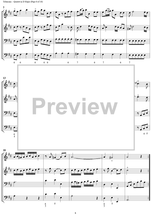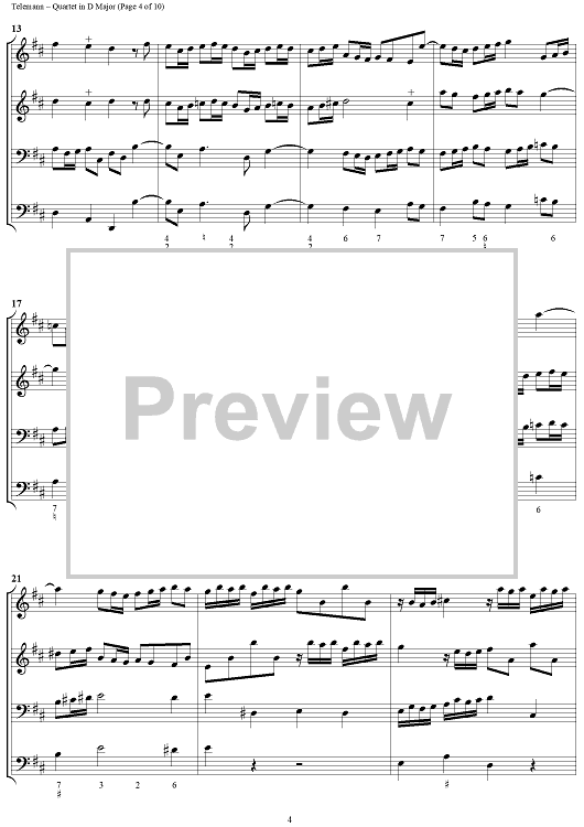 "Quartet in D major - Full Score" Sheet Music by Georg Philipp Telemann