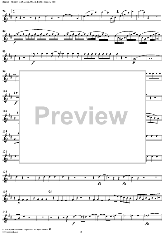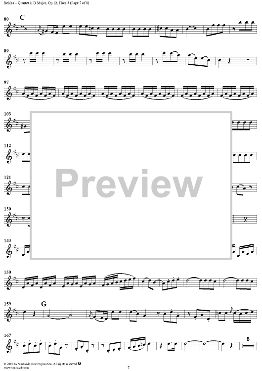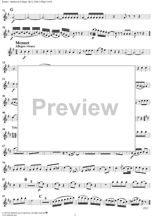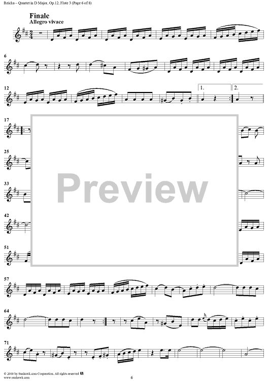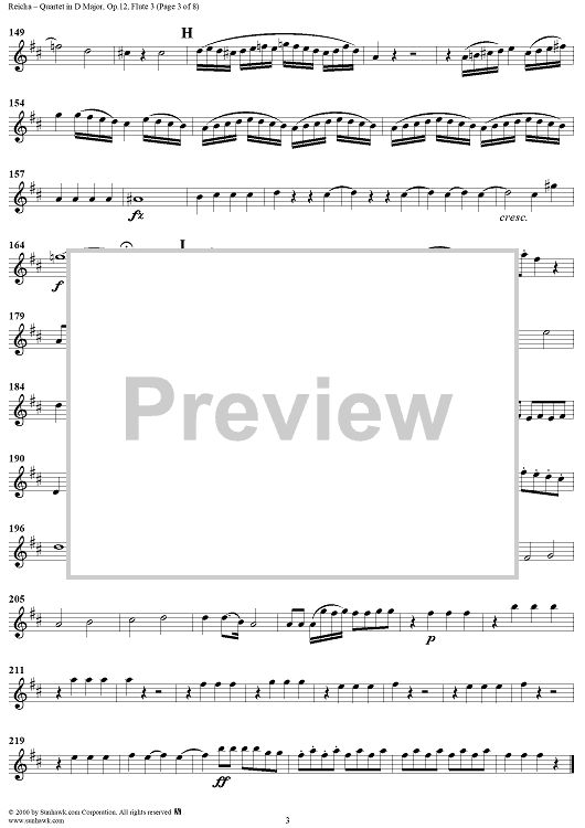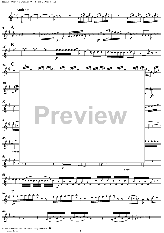 Digital Sheet Music for Quartet in D Major, Op. 12 - Flute 3 by Anton Reicha scored for Flute Quartet; id:183945