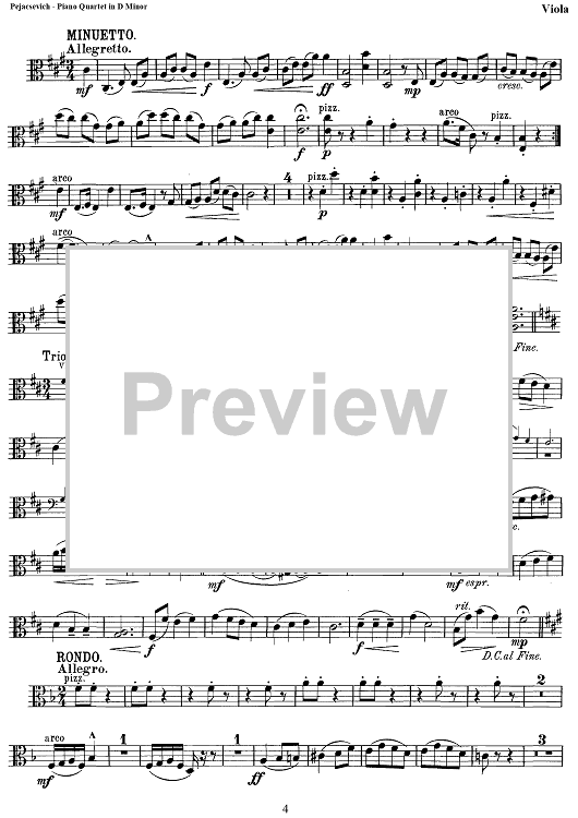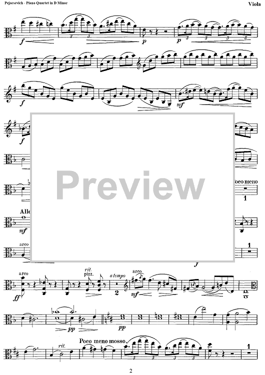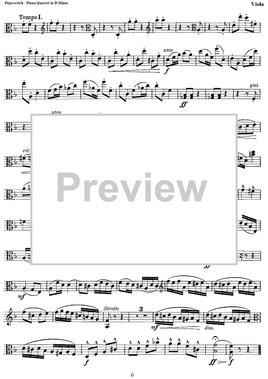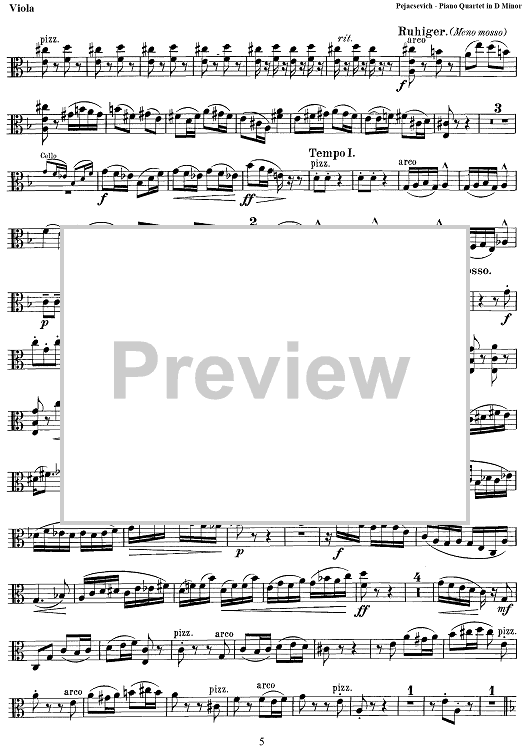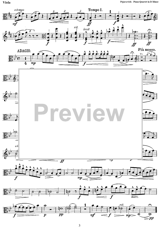 Digital Sheet Music for Quartet in D minor - Viola by Dora Pejacevic scored for Piano Quartet; id:469728