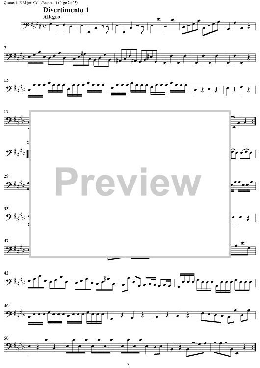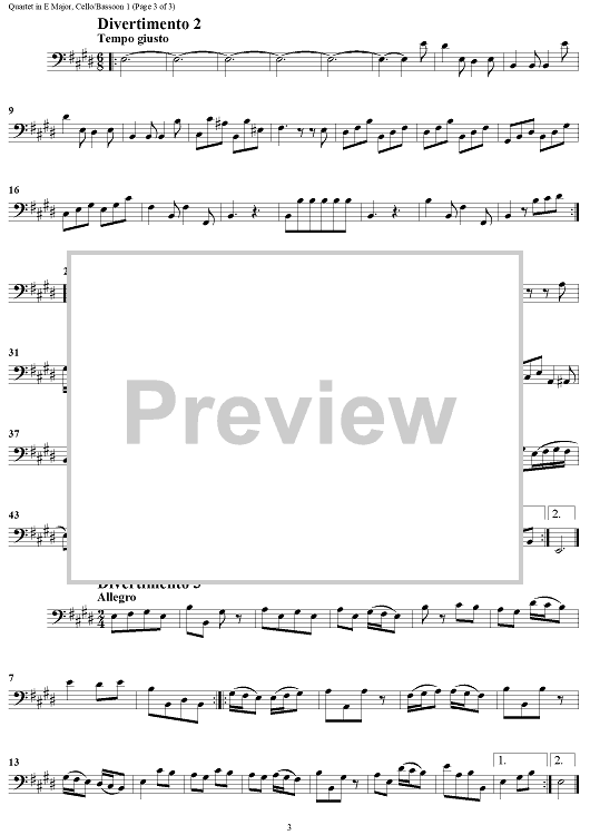 Digital Sheet Music for Quartet in E major - Cello/Bassoon 1 by Georg Philipp Telemann scored for 2 Flutes or Violins, 2 Bassoons or Cellos; id:183869
