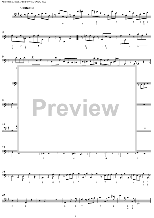 "Quartet in E minor - Cello/Bassoon 2" Sheet Music by Georg Philipp Telemann
