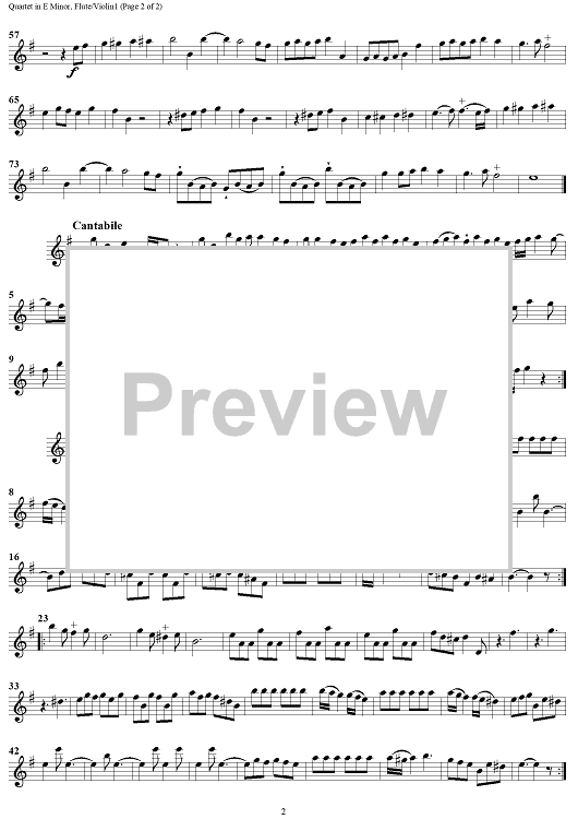 "Quartet in E minor - Flute 1/Violin 1" Sheet Music by Georg Philipp Telemann