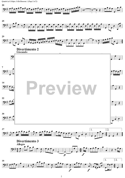 Digital Sheet Music for Quartet in G major - Cello/Bassoon 1 by Georg Philipp Telemann scored for 2 Flutes or Violins, 2 Bassoons or Cellos; id:183874