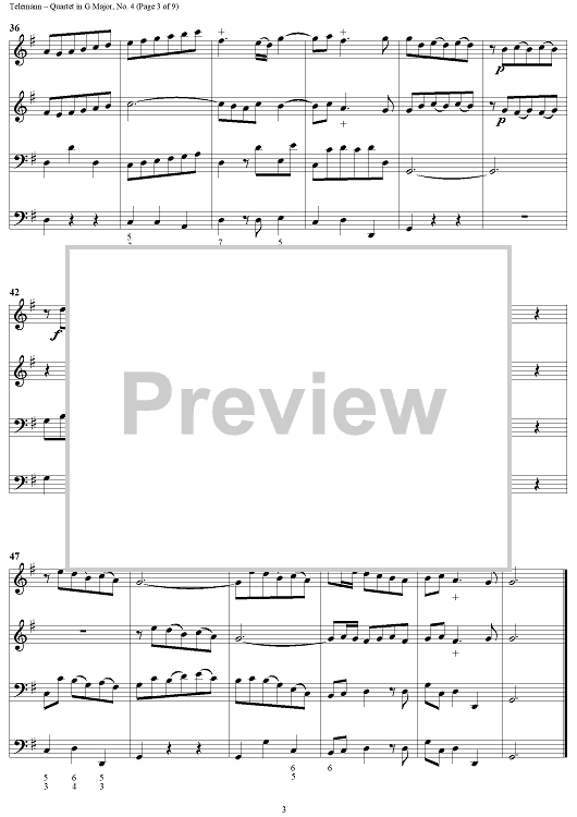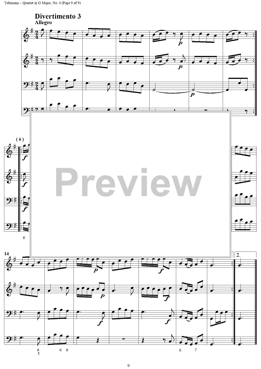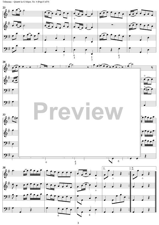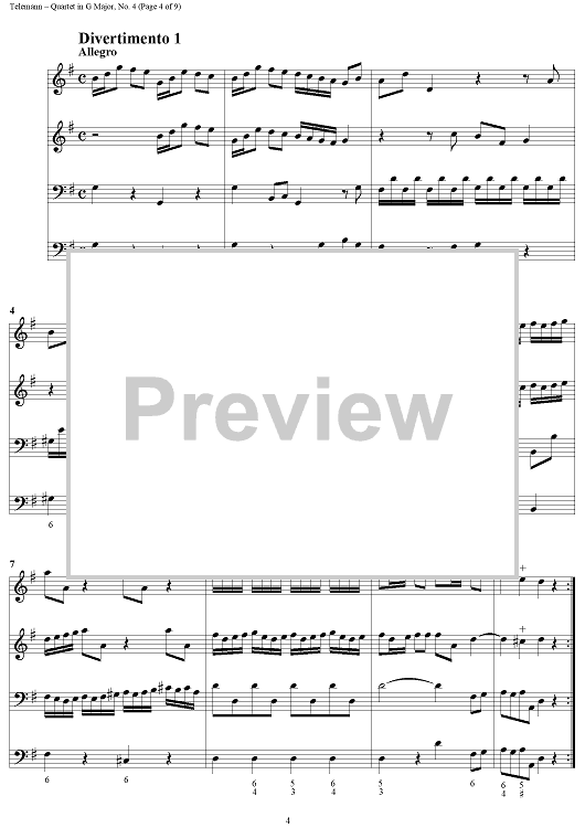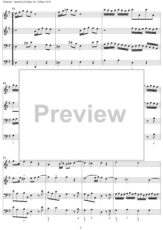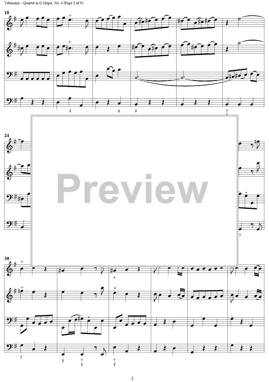 "Quartet in G major - Full Score" Sheet Music by Georg Philipp Telemann