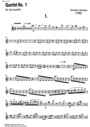 Digital Sheet Music for Quartet No. 1 - E-flat Alto Saxophone by , Gunnar Jansson scored for Saxophone Quartet; id:349808