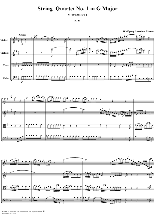 "Quartet No. 1, Movement 1 - Score" Sheet Music by Wolfgang Amadeus Mozart