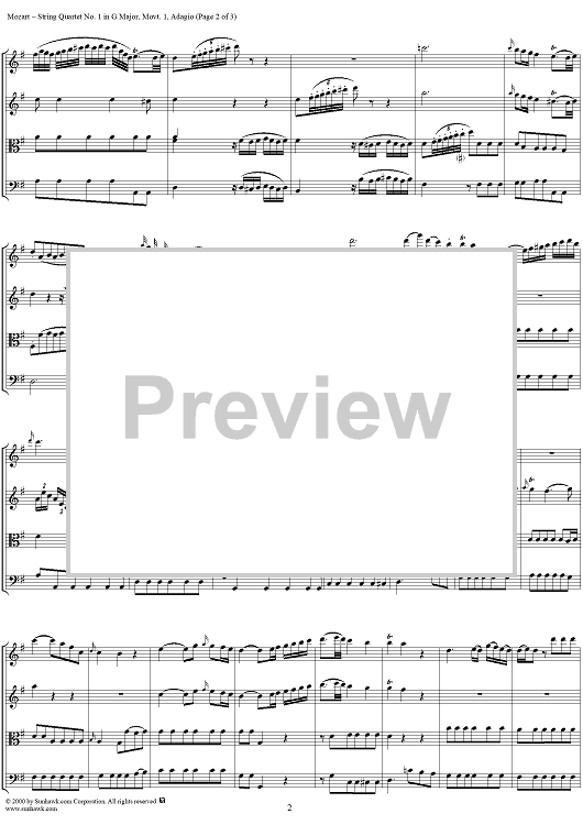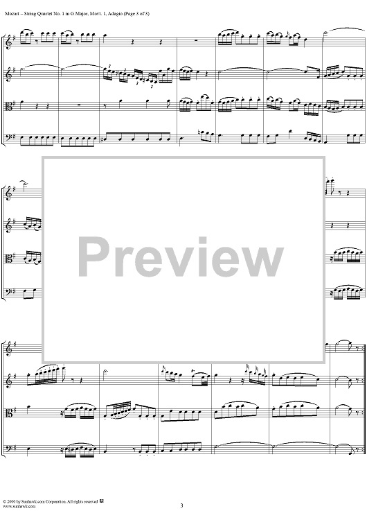 Digital Sheet Music for Quartet No. 1, Movement 1 - Score by Wolfgang Amadeus Mozart scored for String Quartet; id:241573