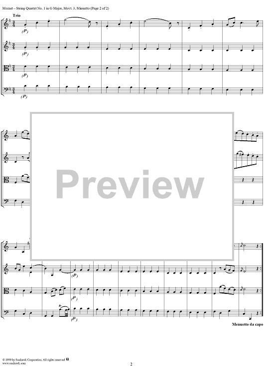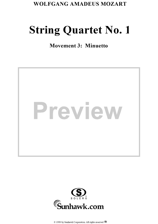 Digital Sheet Music for Quartet No. 1, Movement 3 - Score by Wolfgang Amadeus Mozart scored for String Quartet; id:118544