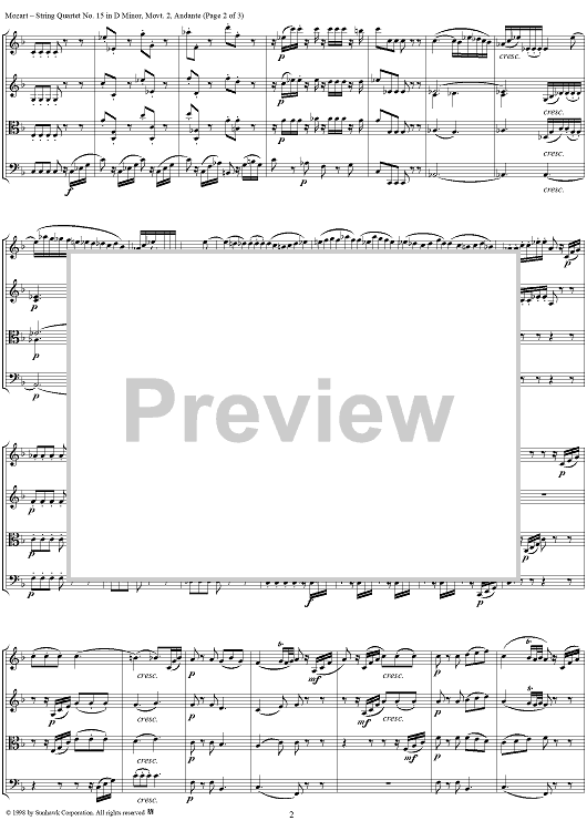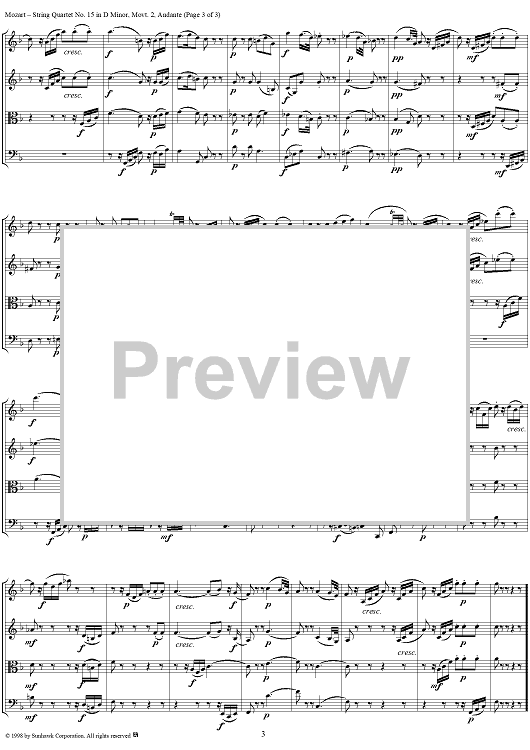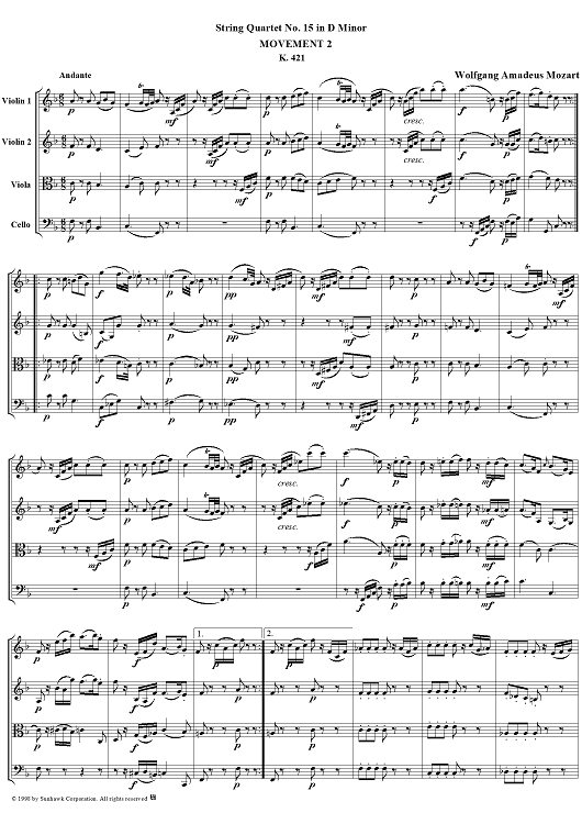 "Quartet No. 15, Movement 2 - Score" Sheet Music by Wolfgang Amadeus Mozart