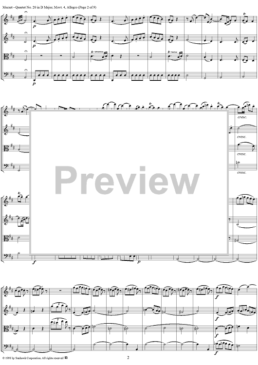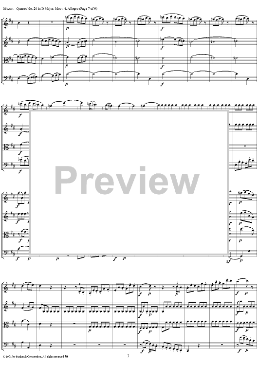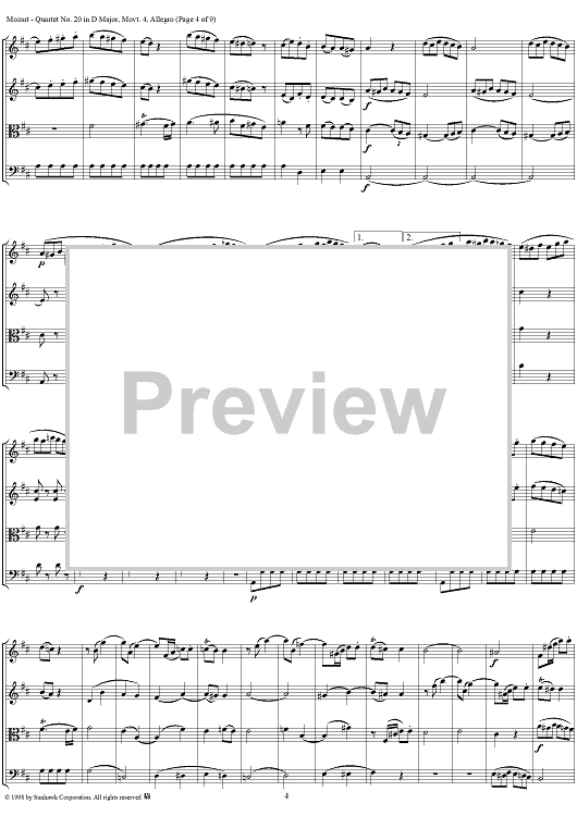 Digital Sheet Music for Quartet No. 20, Movement 4 - Score by Wolfgang Amadeus Mozart scored for String Quartet; id:108962