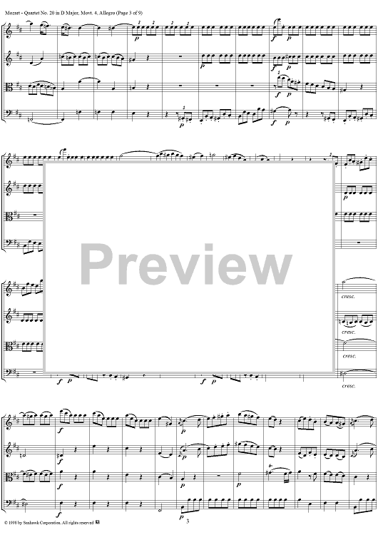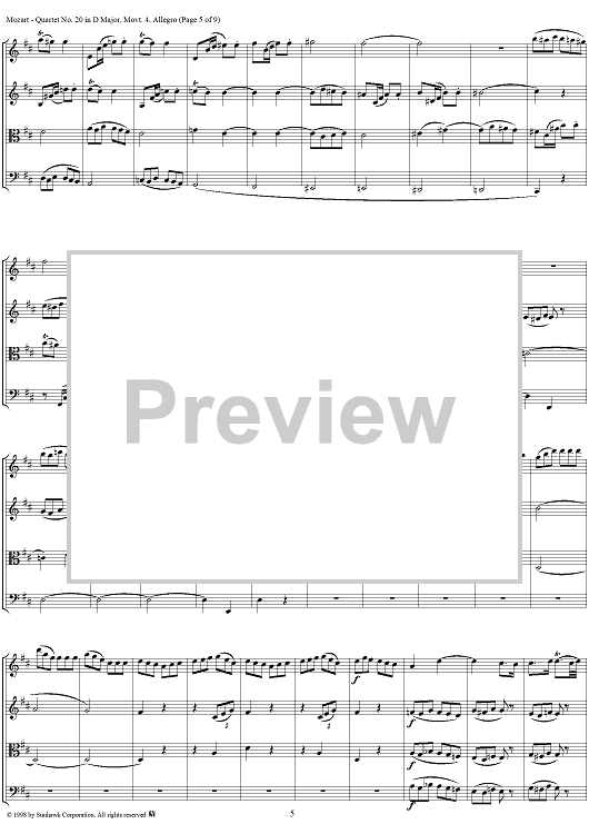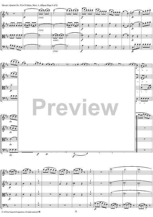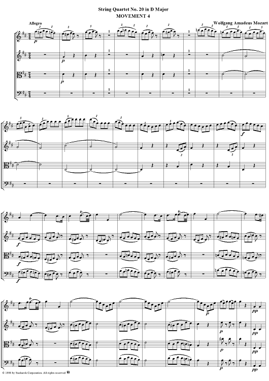 "Quartet No. 20, Movement 4 - Score" Sheet Music by Wolfgang Amadeus Mozart