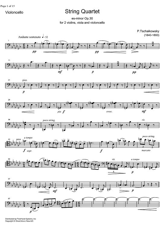 Digital Sheet Music for Quartet No. 3 in E-flat minor (es-moll) - Cello by Peter Ilyich Tchaikovsky scored for String Quartet; id:326426