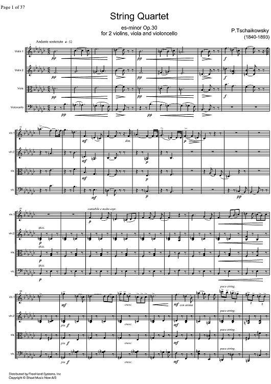 Digital Sheet Music for Quartet No. 3 in E-flat minor (es-moll) - Score by Peter Ilyich Tchaikovsky scored for String Quartet; id:326422