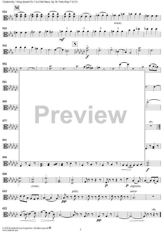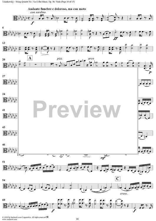 "Quartet No. 3 in E-flat minor (es-moll) - Viola" Sheet Music by Peter Ilyich Tchaikovsky