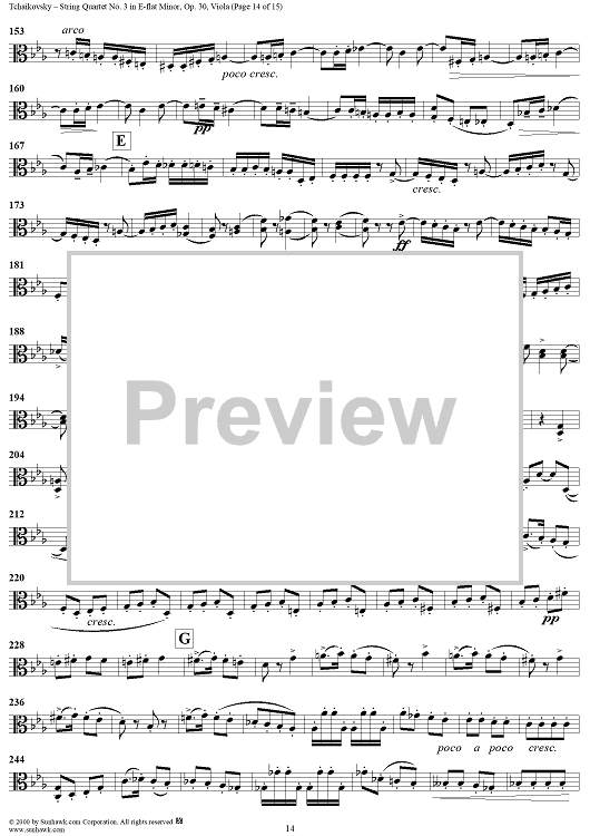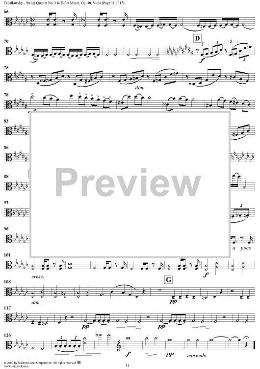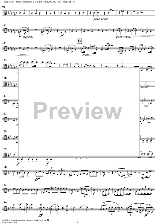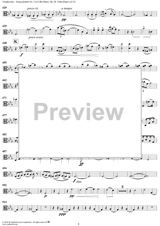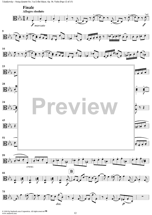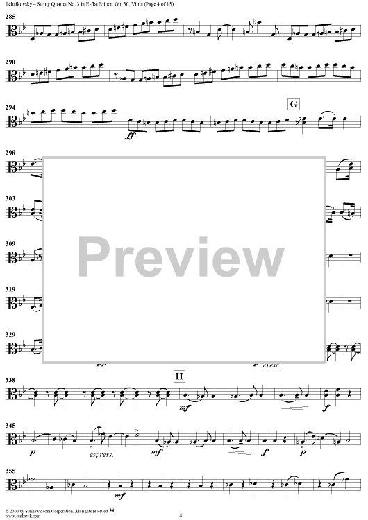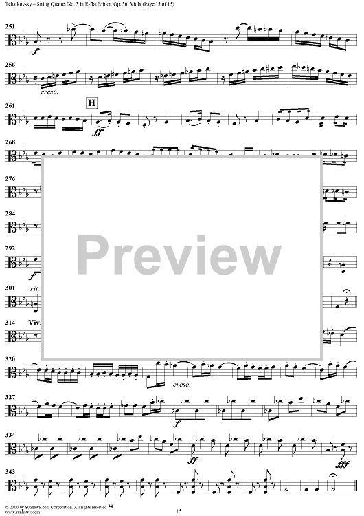 Digital Sheet Music for Quartet No. 3 in E-flat minor (es-moll) - Viola by Peter Ilyich Tchaikovsky scored for String Quartet; id:259898