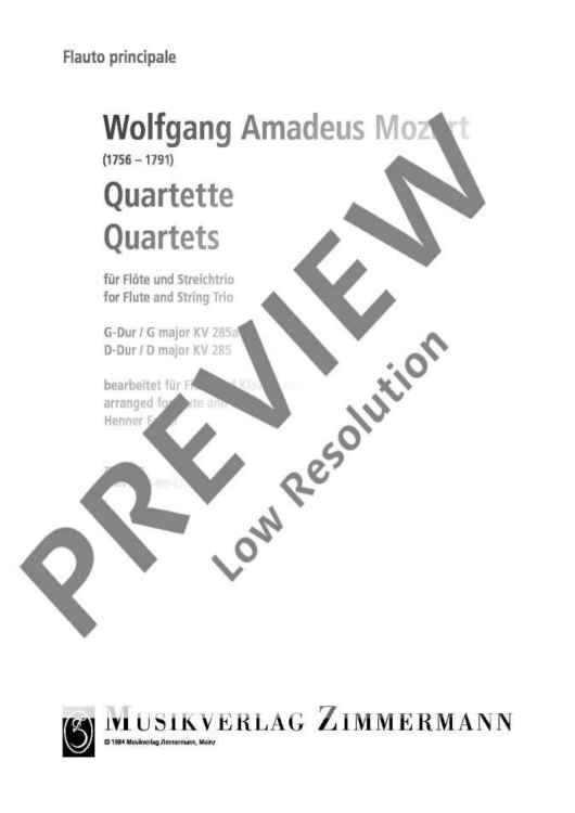 "Quartets G major KV 285a and D major KV 285 - Piano Score and Solo Part" Sheet Music by Wolfgang Amadeus Mozart