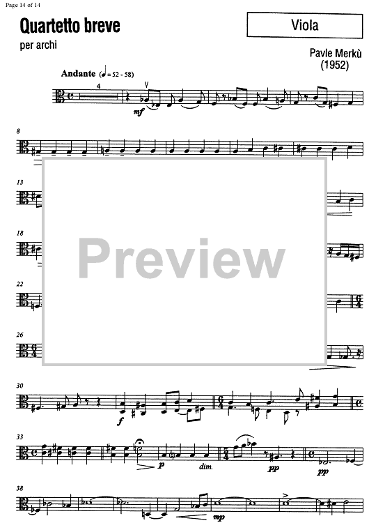 Digital Sheet Music for Quartetto breve (Short quartet) - Score by , Pavle Merkù scored for String Quartet; id:350834