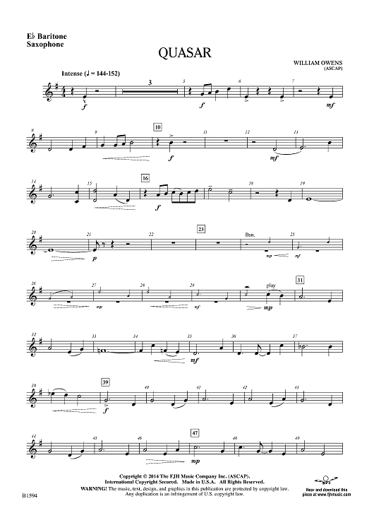 Digital Sheet Music for Quasar - Eb Baritone Sax by William Owens scored for Concert Band; id:446014