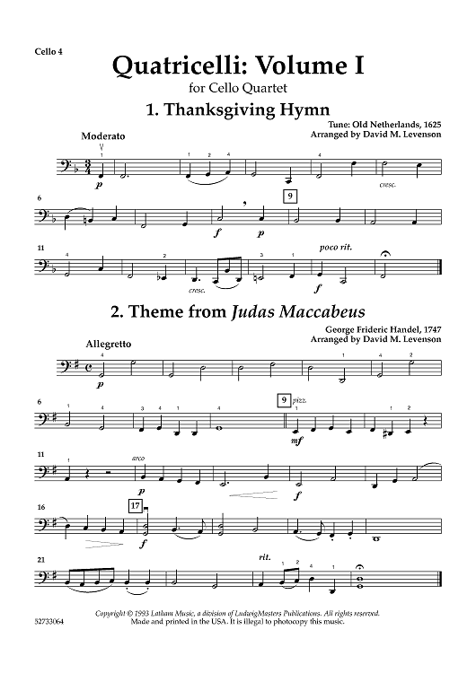 Digital Sheet Music for Quatricelli: Volume I - Cello 4 by , Various, David M. Levenson scored for Cello Quartet; id:464493