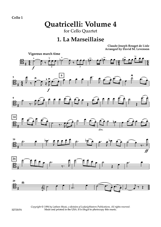 Digital Sheet Music for Quatricelli: Volume IV - Cello 1 by , Various, David M. Levenson scored for Cello Quartet; id:464520