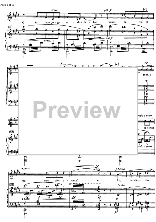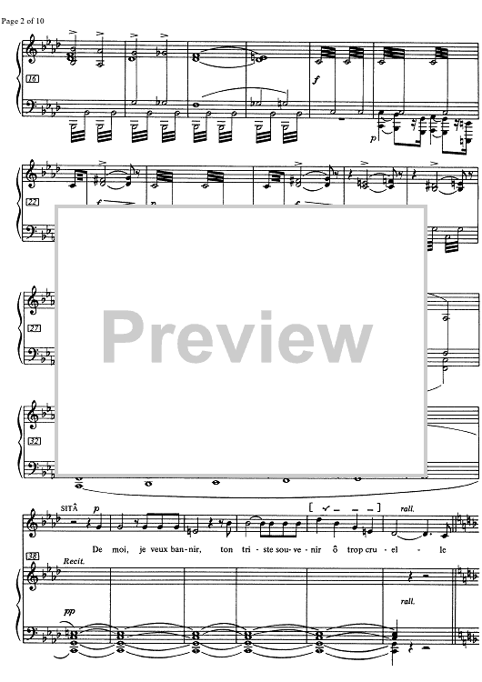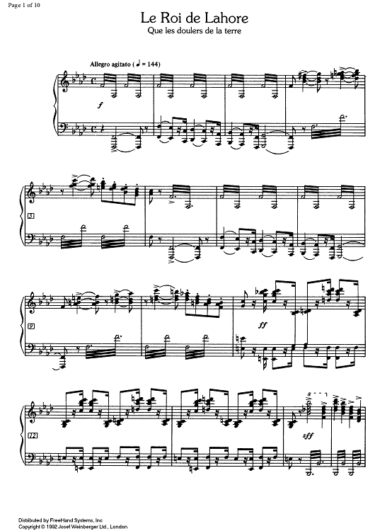 Digital Sheet Music for Que les douleurs de la terre from Le Roi de Lahore by Jules Massenet scored for Soprano/Piano; id:332350